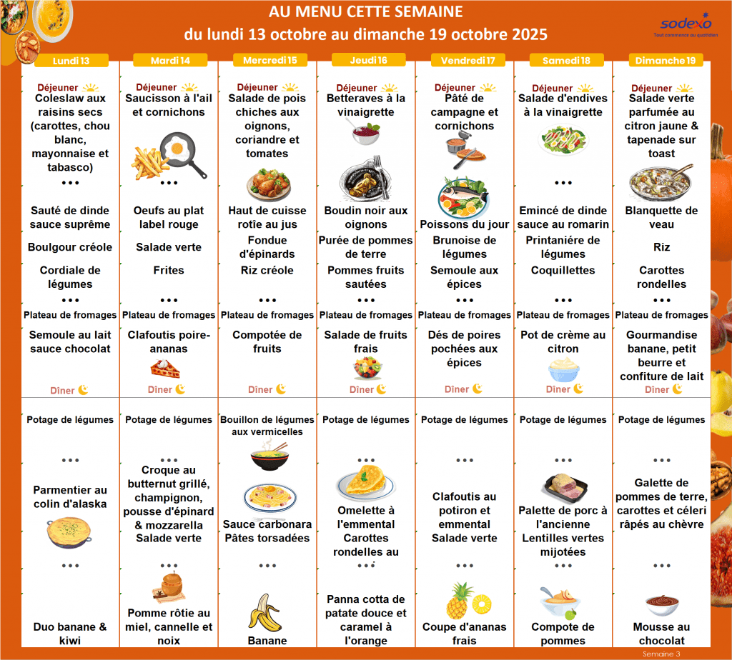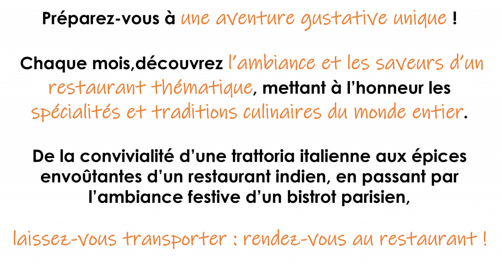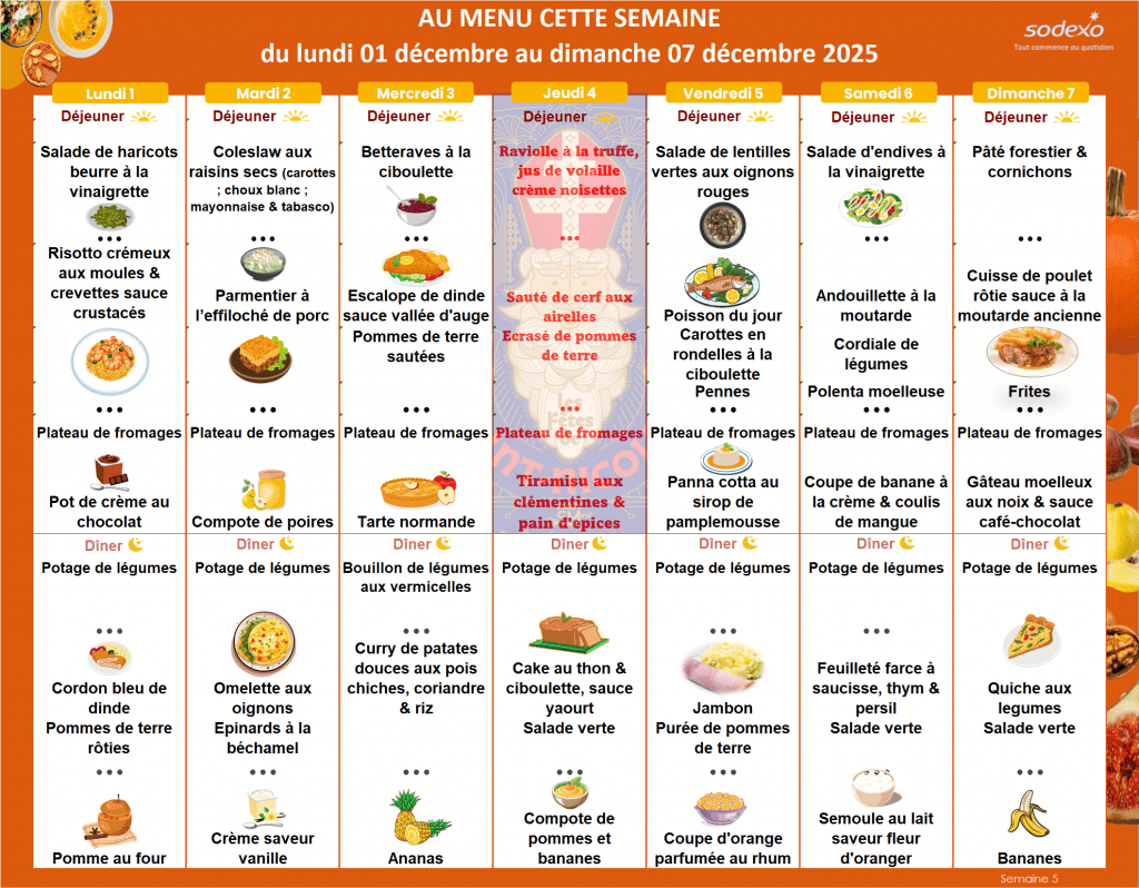 Aussi, lors des journées où nous proposons des menus à thème ou calendaire, nous ne servirons pas de Menu Club